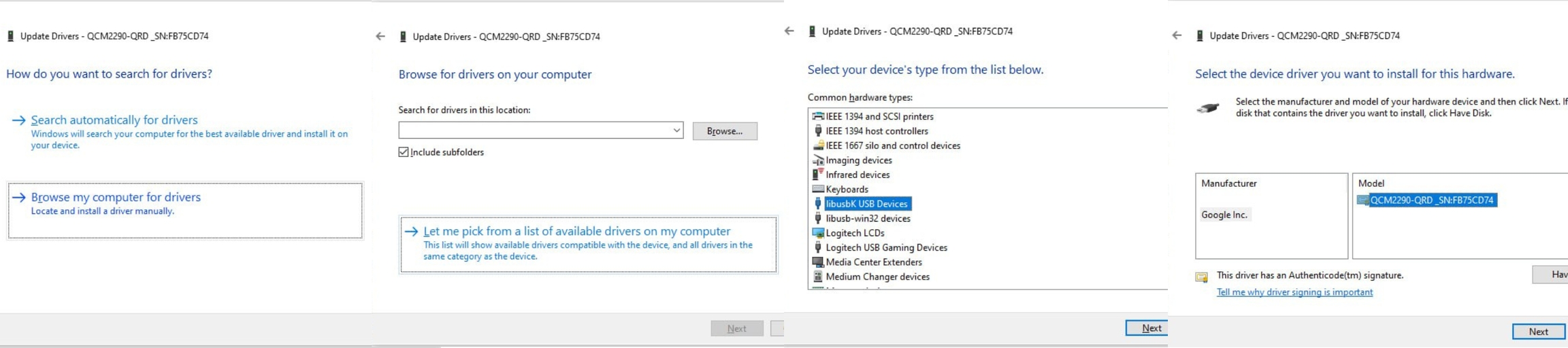- Listeden “libusbK USB devices” seçin ve ilerleyin.