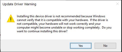 - Çıkan uyarıda Evet butonuna tıklayın ve sürücüyü yükleyin.