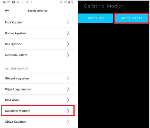 - Cihazın ADB (Geliştirici Modu) kapalı olması gerekmektedir.